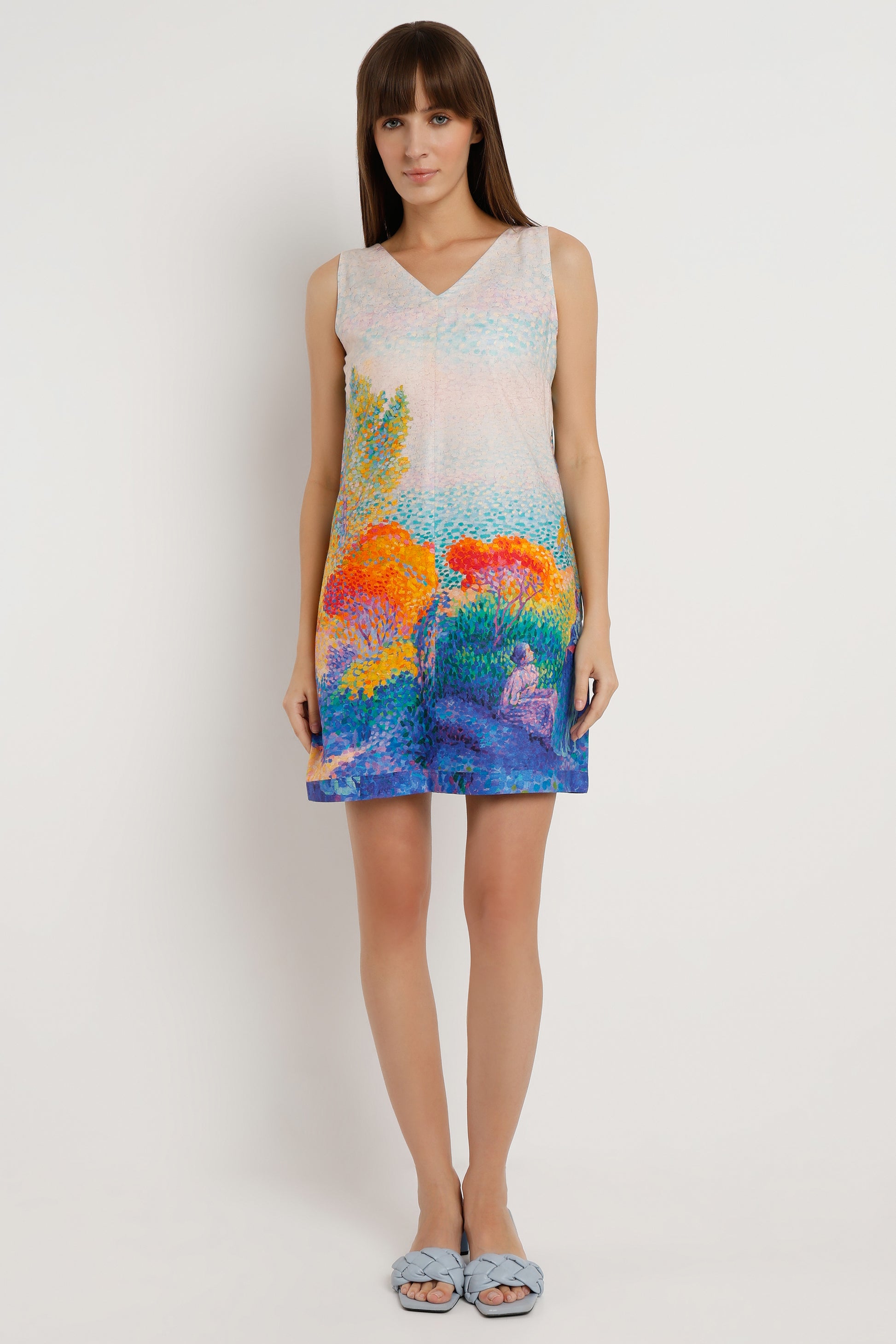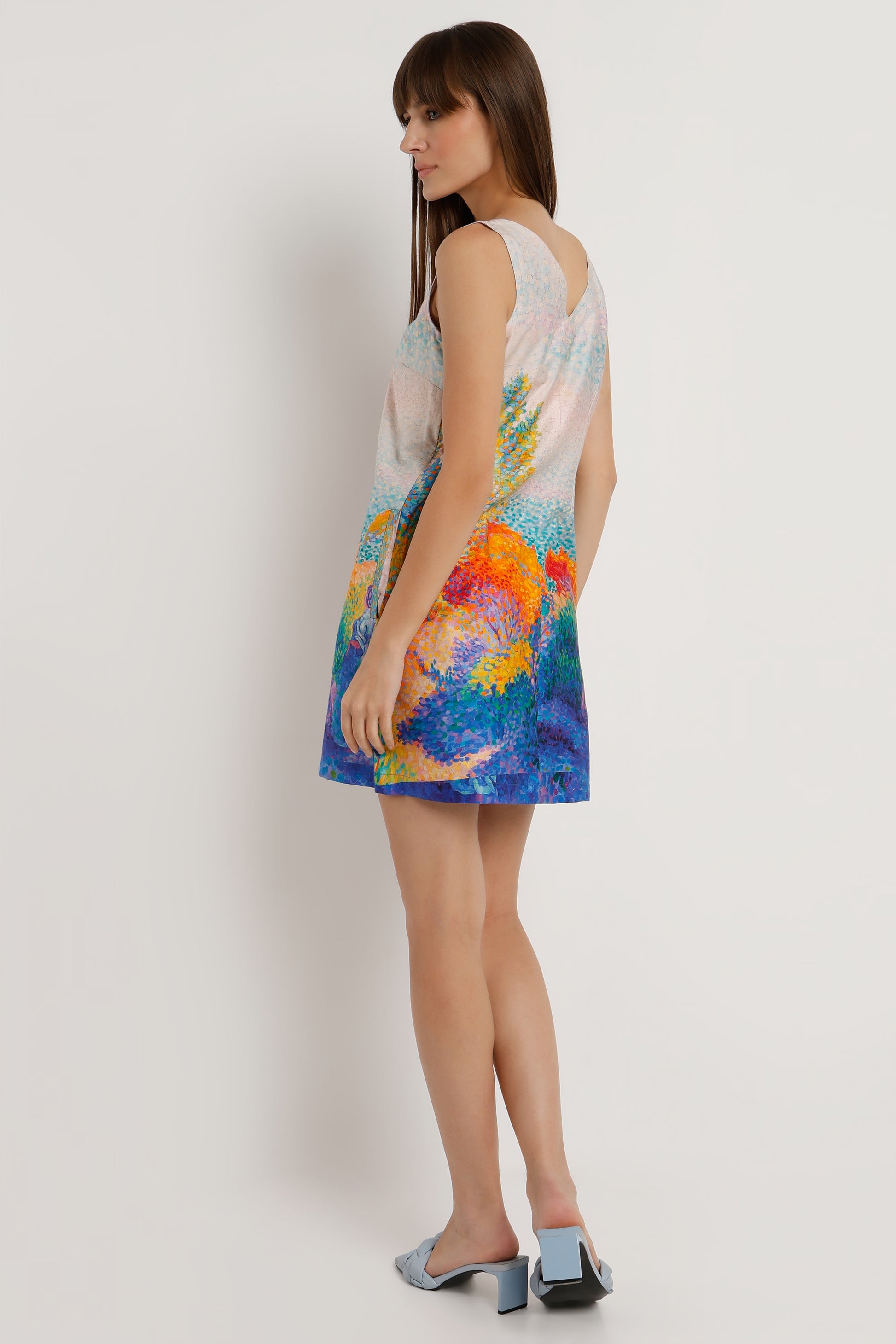 Crafted from 100% organic cotton satin, the Daydream Muse Dress offers a luxurious yet breathable feel. Its short, sleeveless design ensures comfort and ease of movement, making it ideal for warm days or layered styling. This dress combines sustainable fabric with elegant simplicity, perfect for those seeking both style and eco-conscious quality.