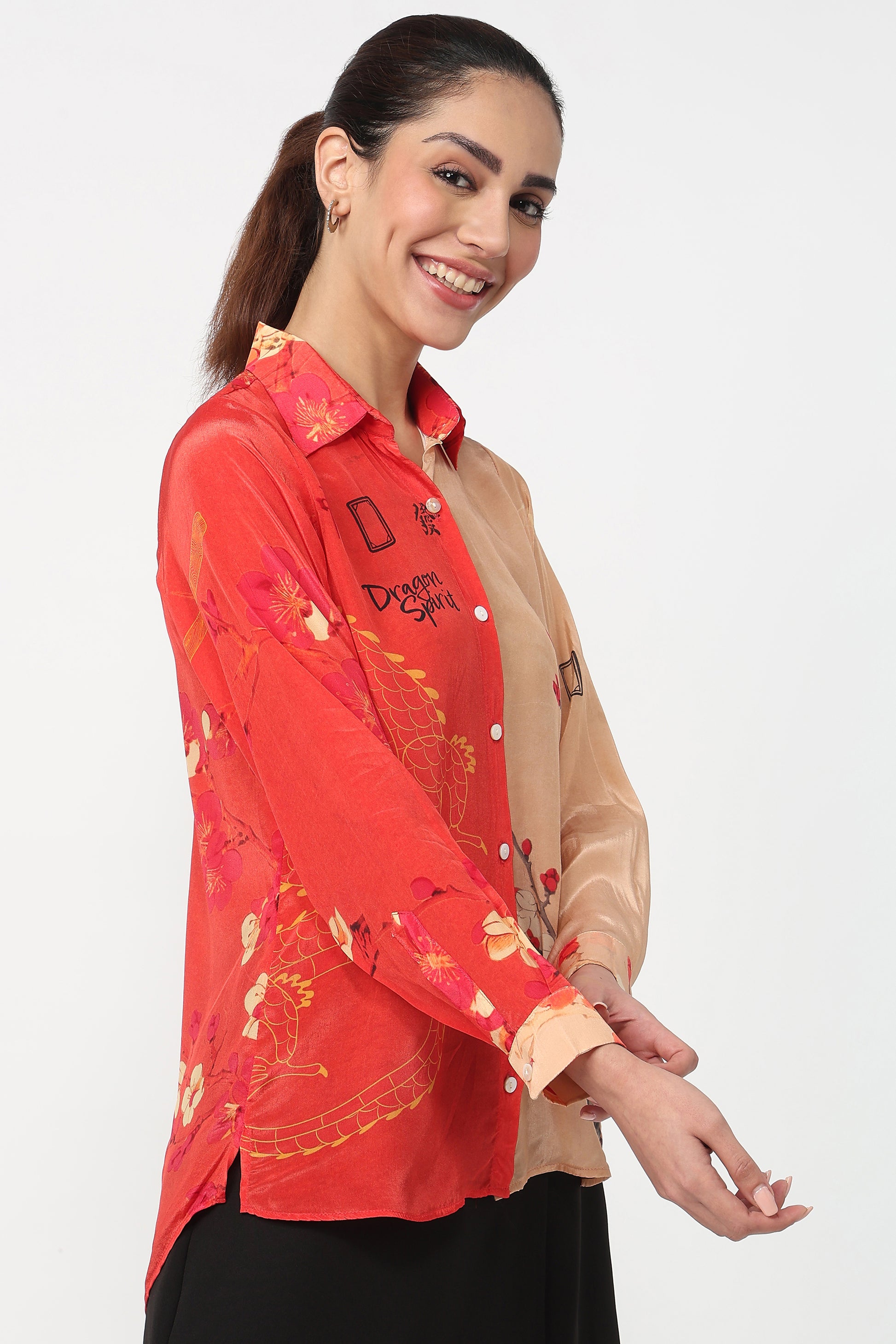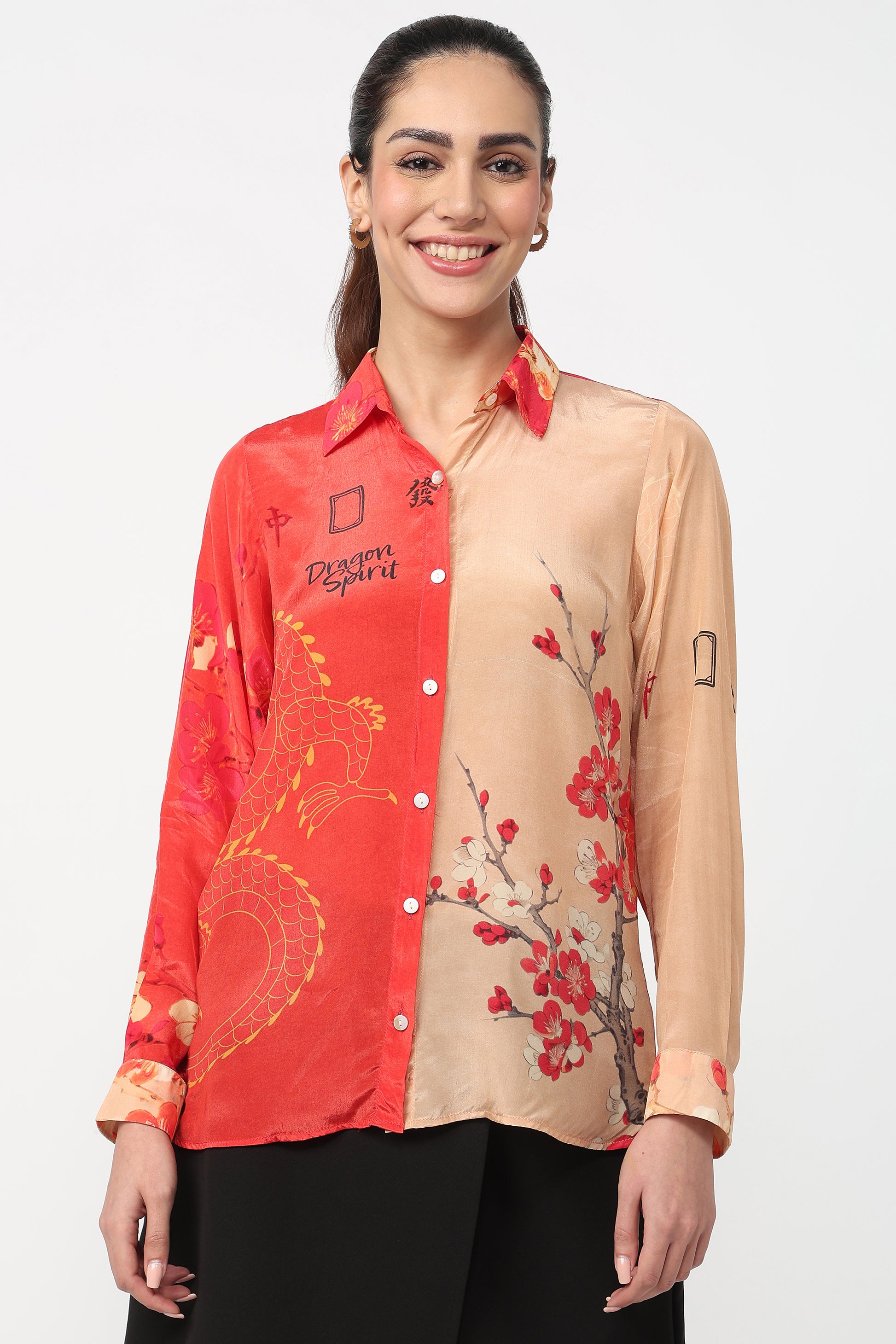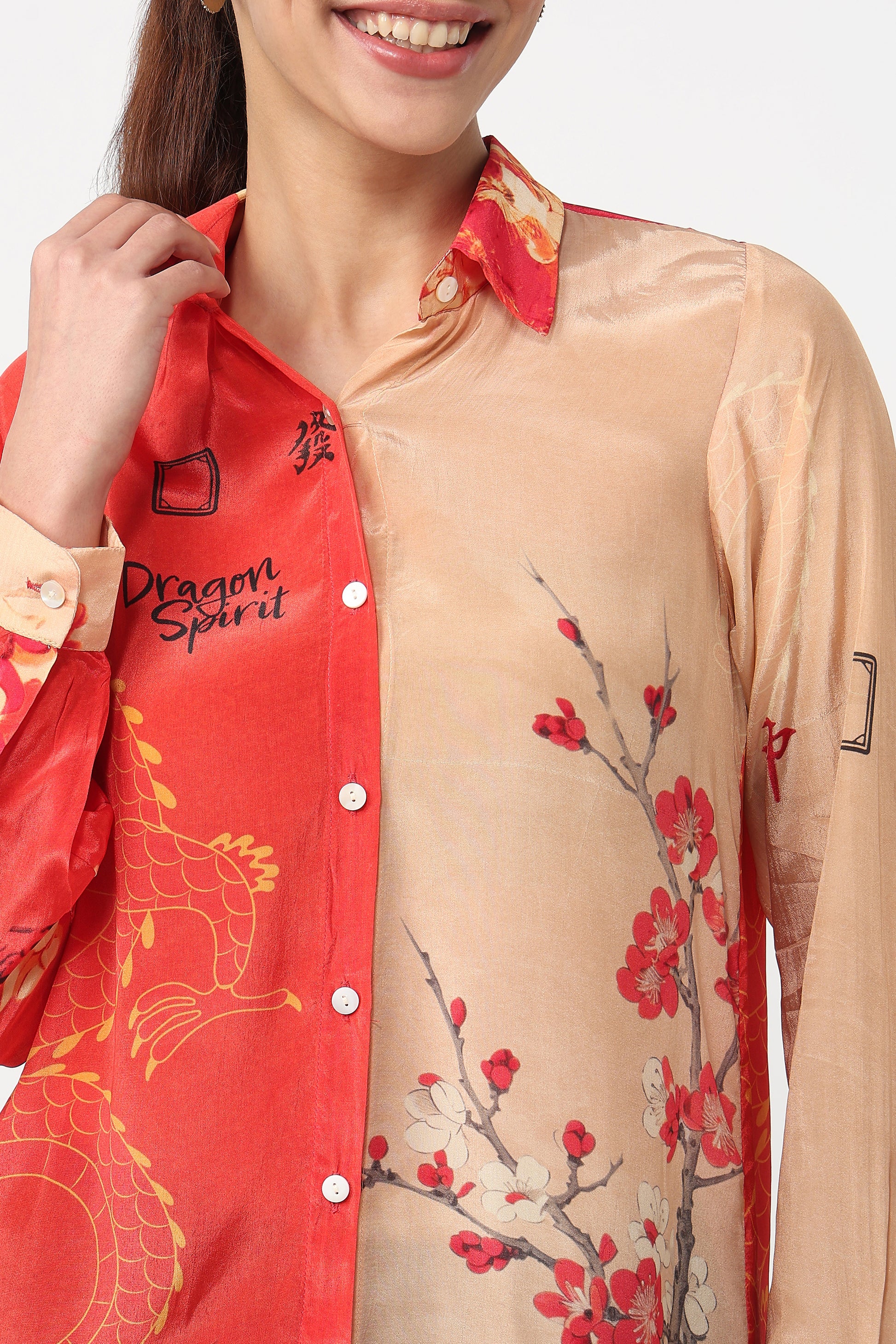and 3/4th sleeves. Featuring bold dragon motifs and