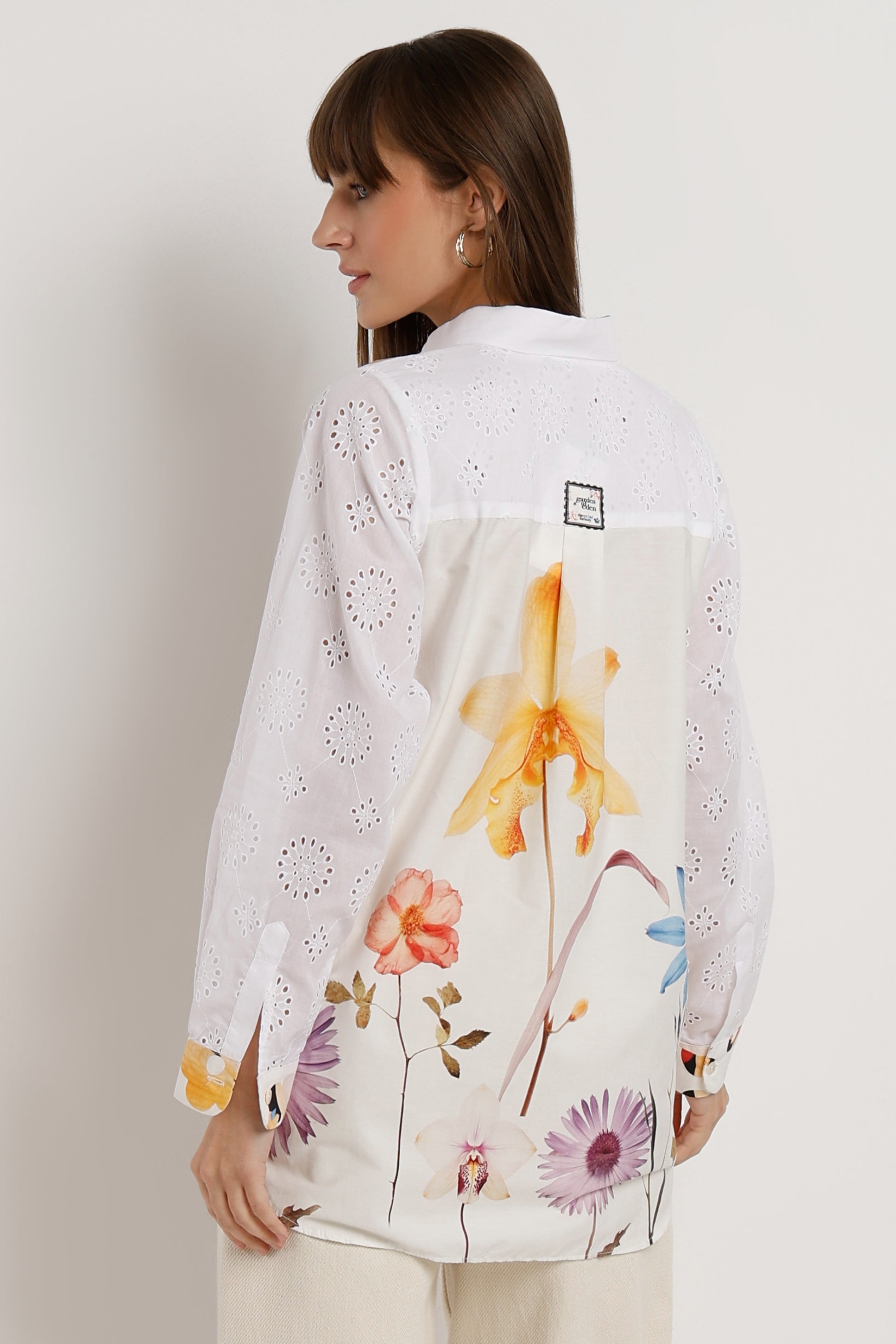 Crafted from 100% organic cotton with intricate Schiffli embroidery, the Floral Echo Shirt offers a refined regular fit that balances comfort and style. Its breathable fabric ensures all-day wearability, while the detailed floral patterns add a sophisticated touch, making it an ideal choice for those seeking sustainable elegance in their wardrobe.