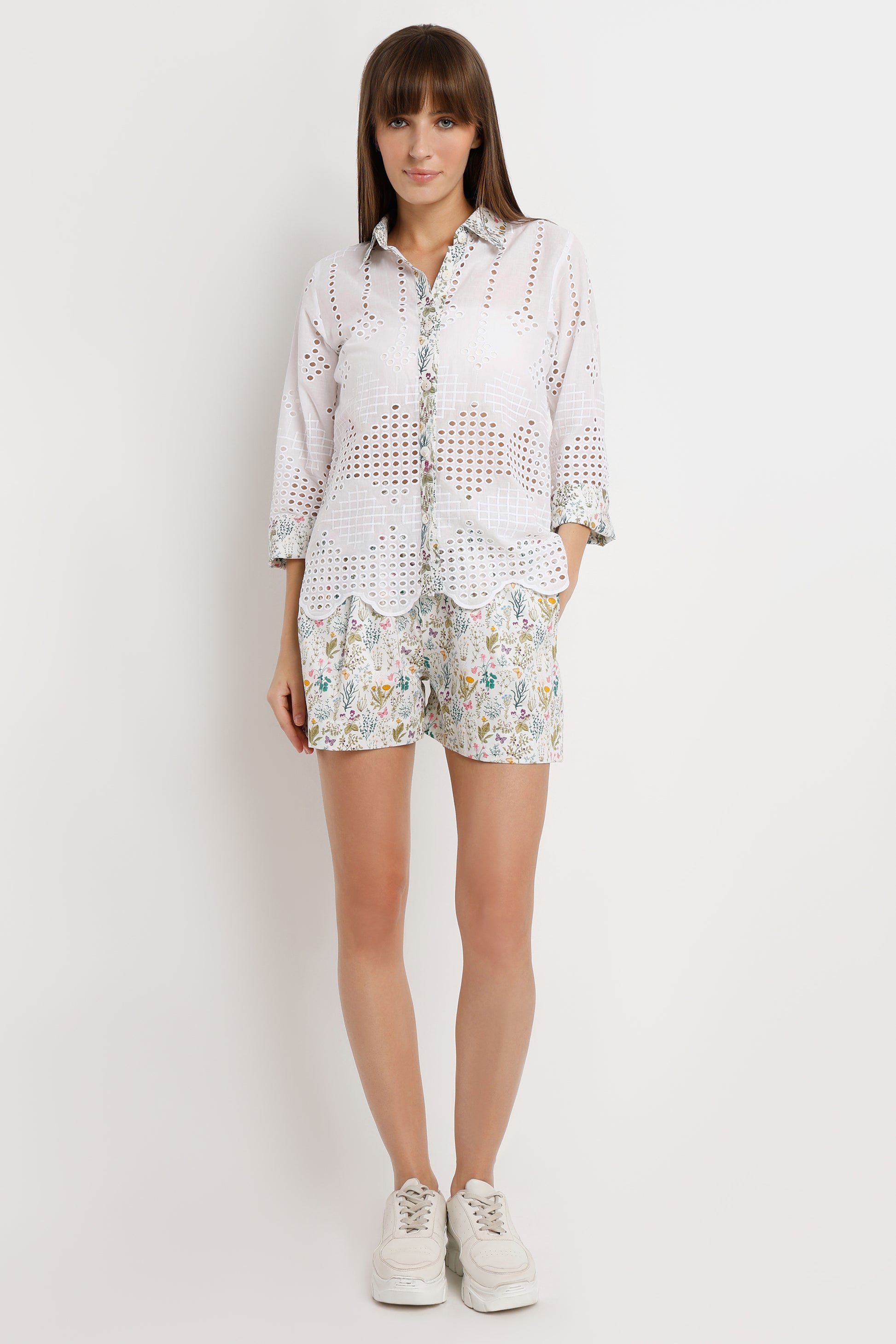 - Fabric: Shirt - Schiffli 100% Organic Cotton,Shorts - 100% Organic Cotton Satin