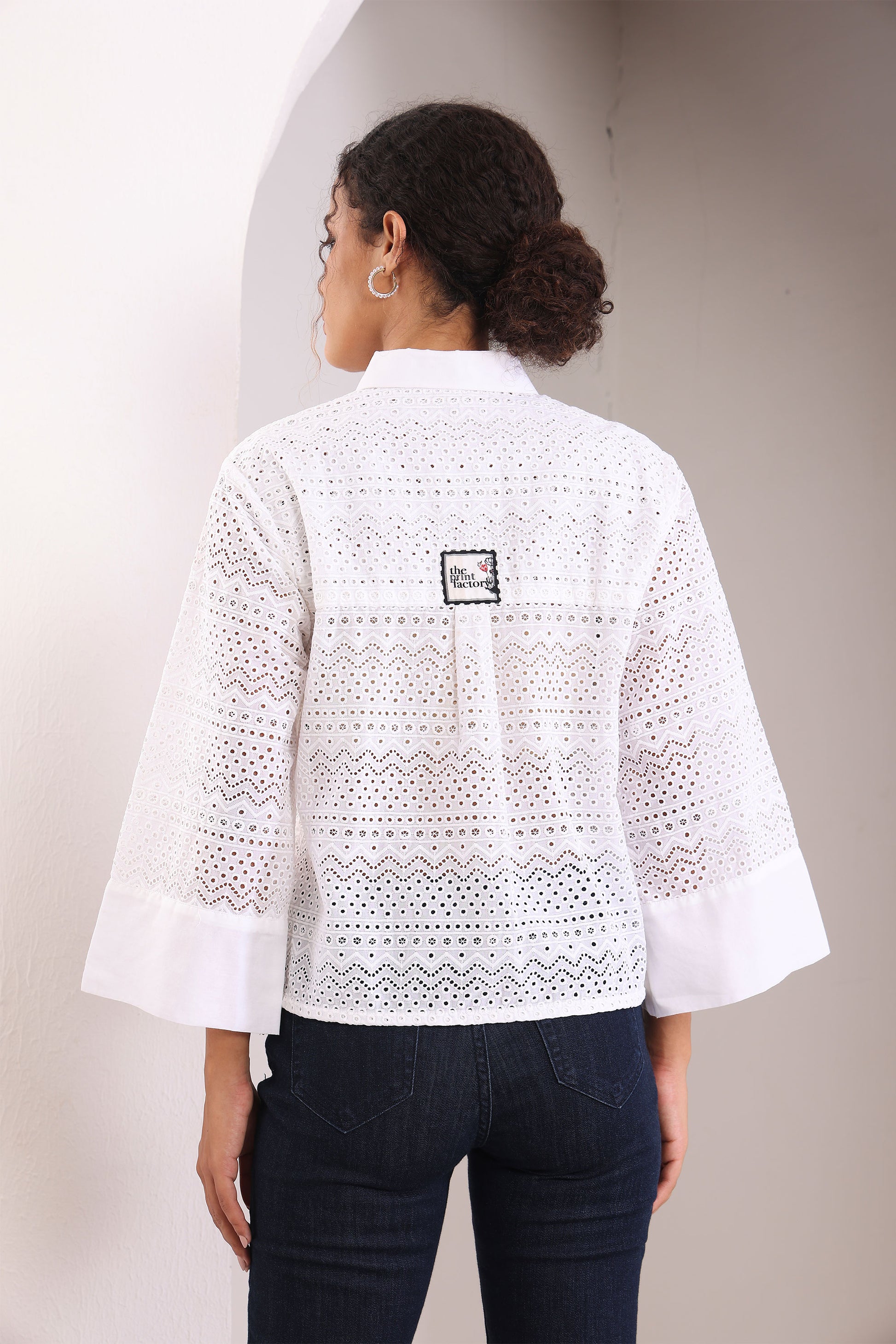 Crafted from 100% organic cotton with intricate Schiffli embroidery, the Green Haven Shirt offers a refined regular fit that balances comfort and style. Its natural fabric ensures breathability and sustainability, making it an excellent choice for those seeking eco-friendly yet sophisticated apparel. Ideal for both casual and semi-formal occasions, this shirt combines expert craftsmanship with timeless design.