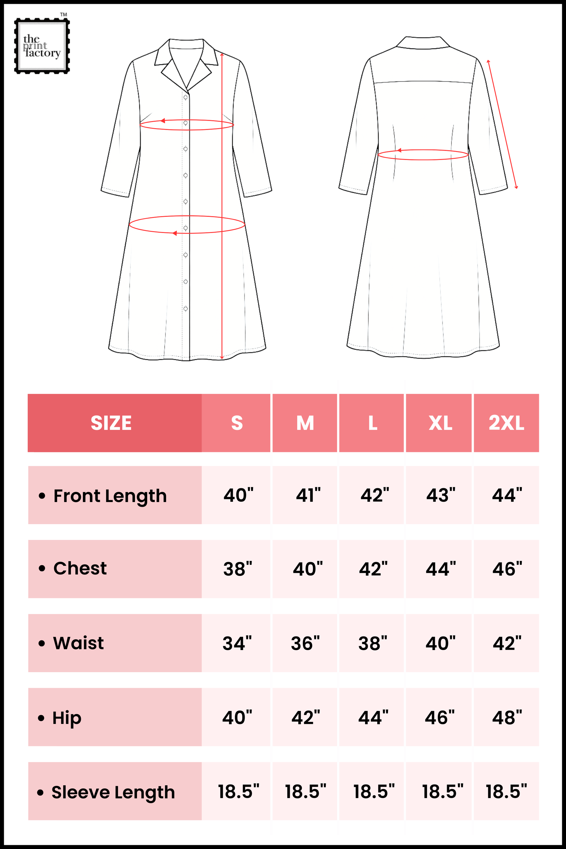 Note: Above mentioned numbers are bust size