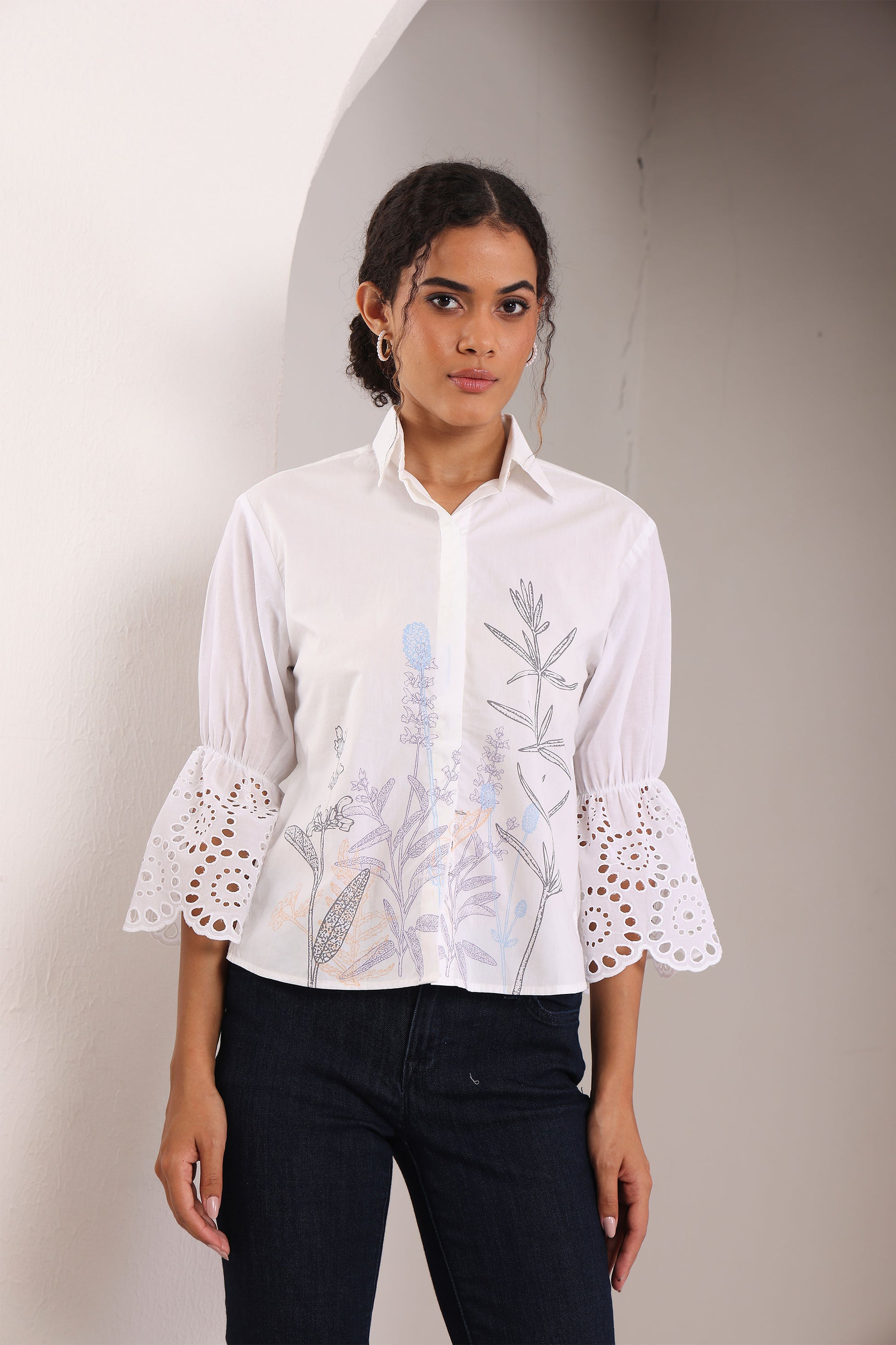 Crafted from 100% organic cotton with exquisite Schiffli embroidery, the Lined in Petals Shirt offers a refined regular fit that balances comfort and style. Its natural fabric ensures breathability and sustainability, while the detailed embroidery adds a sophisticated texture, making it an ideal choice for those seeking elegance with eco-conscious quality.