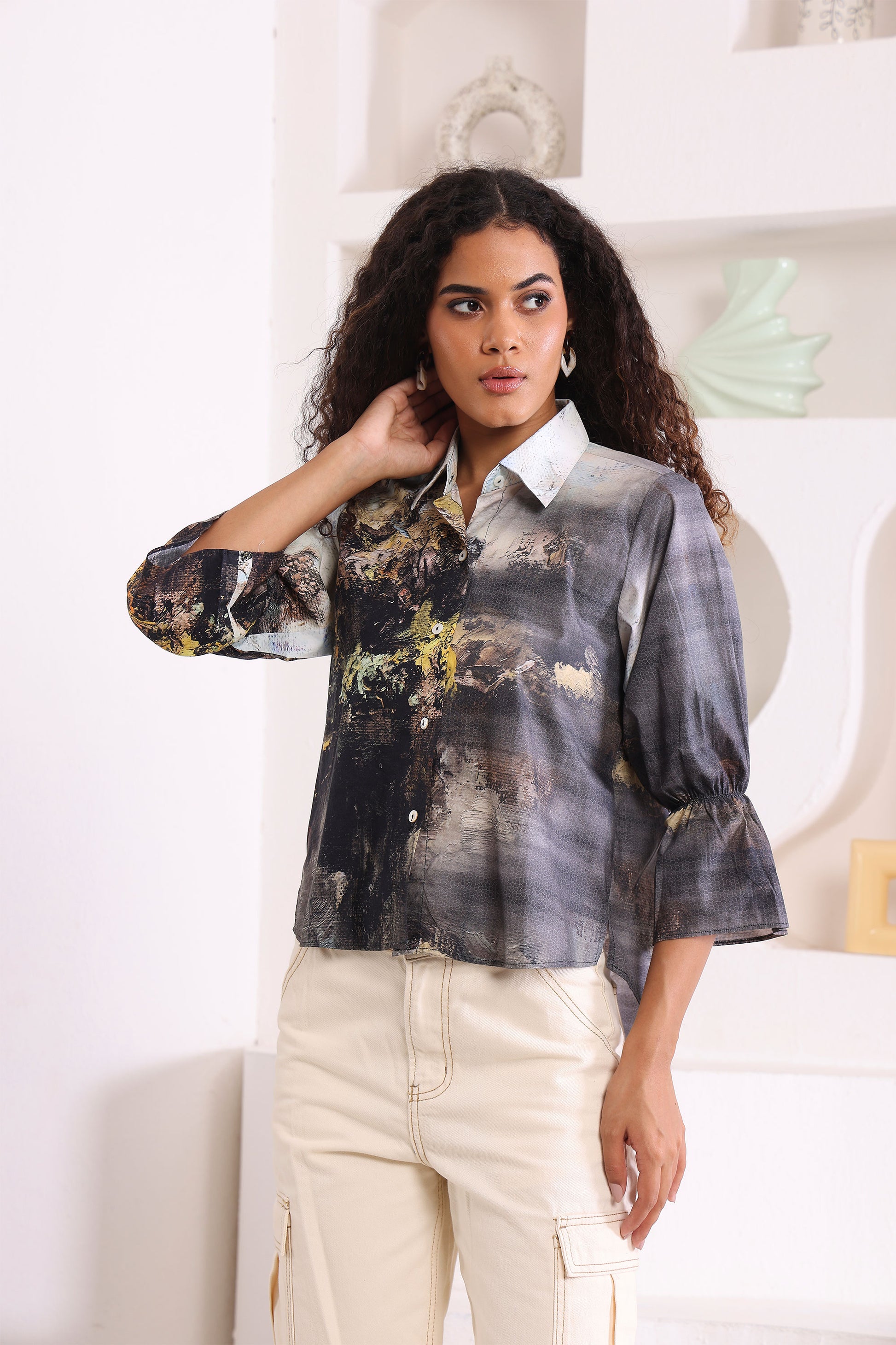 Crafted from 100% organic poplin cotton, the Painted Dusk Shirt offers a refined regular fit that balances comfort and style. Its distinctive patterned sleeves add a subtle artistic flair, making it an ideal choice for those who appreciate quality fabric and thoughtful design in their wardrobe essentials.