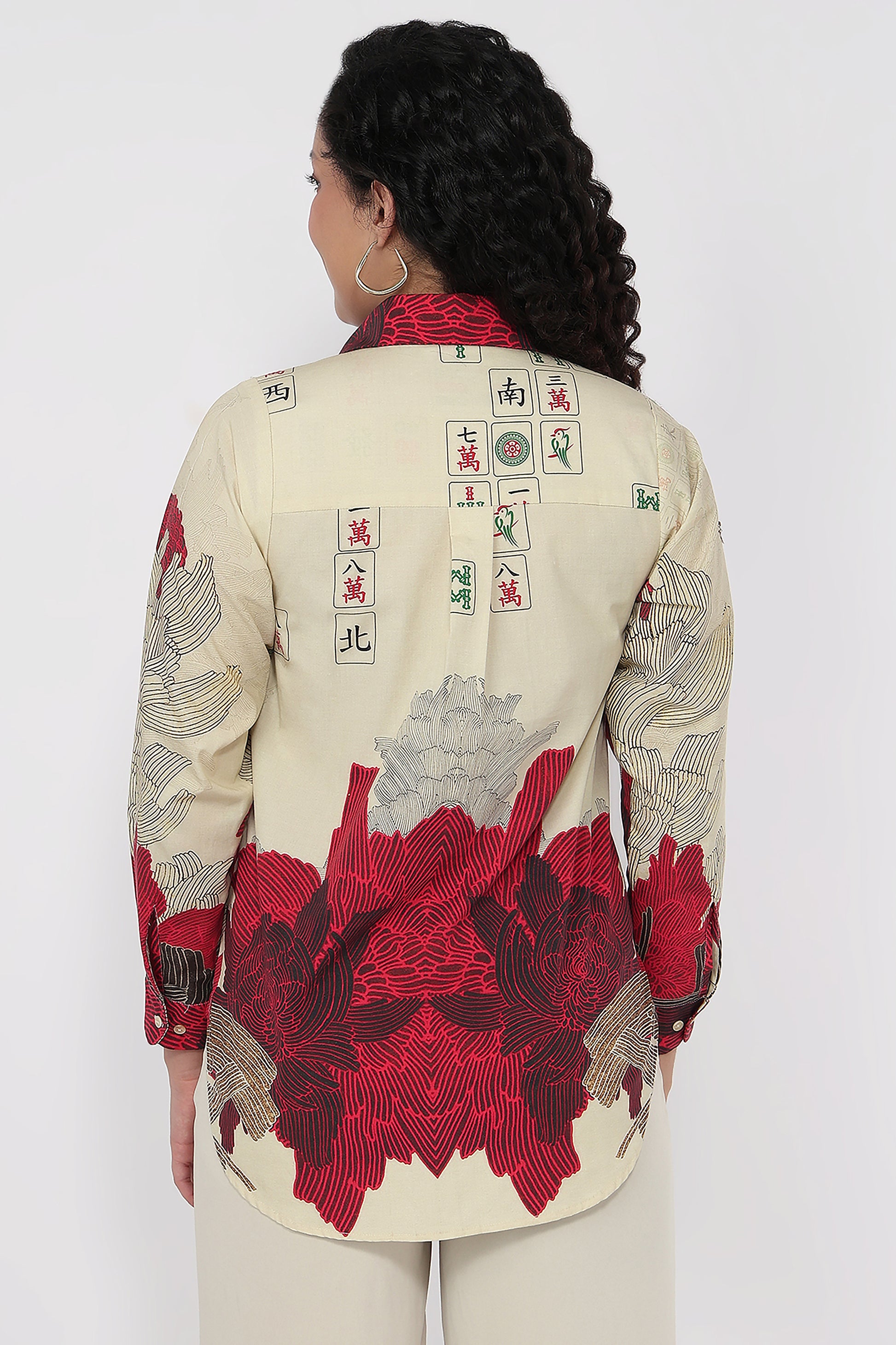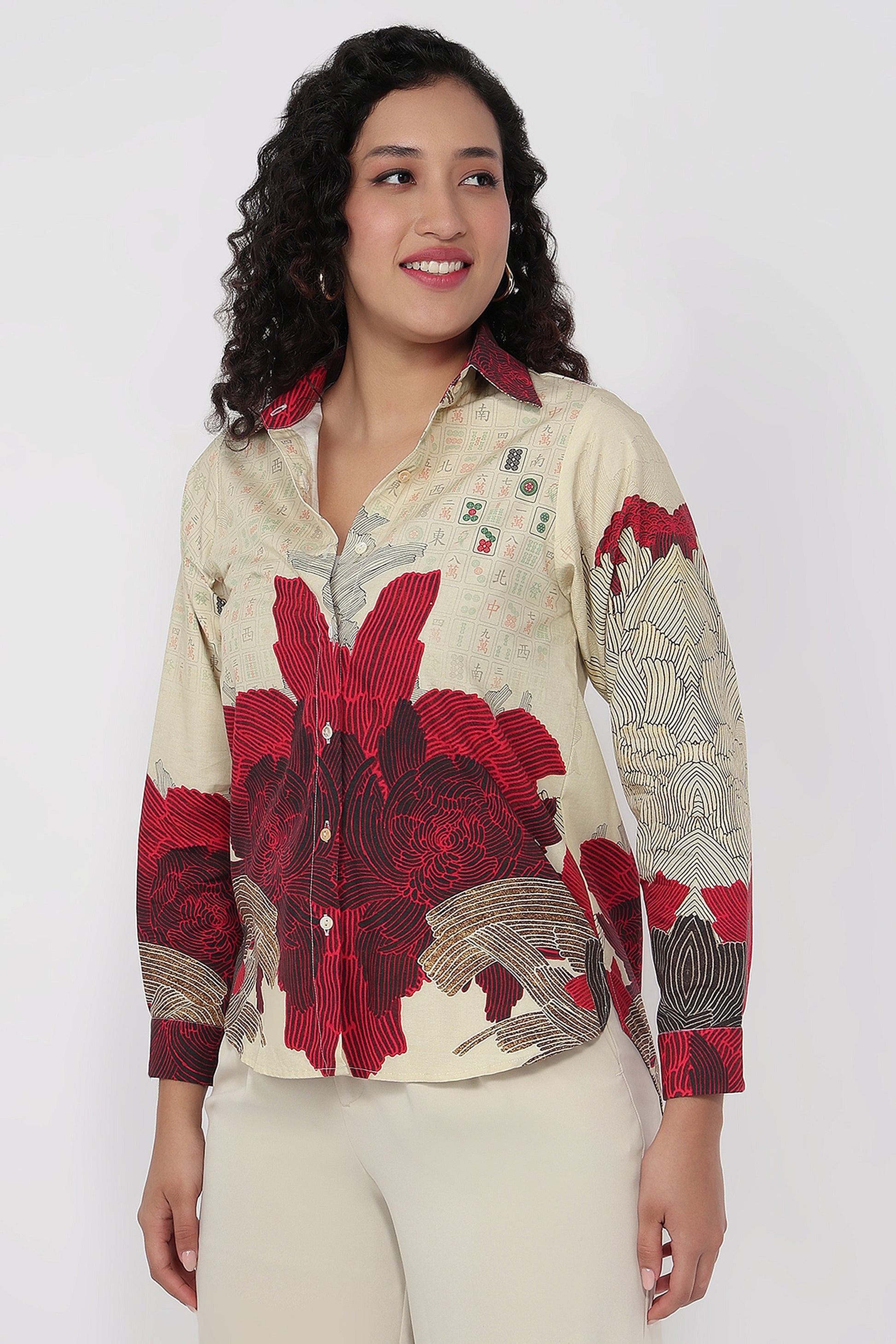 100% Pure cotton shirt Featuring bold scarlet peonies