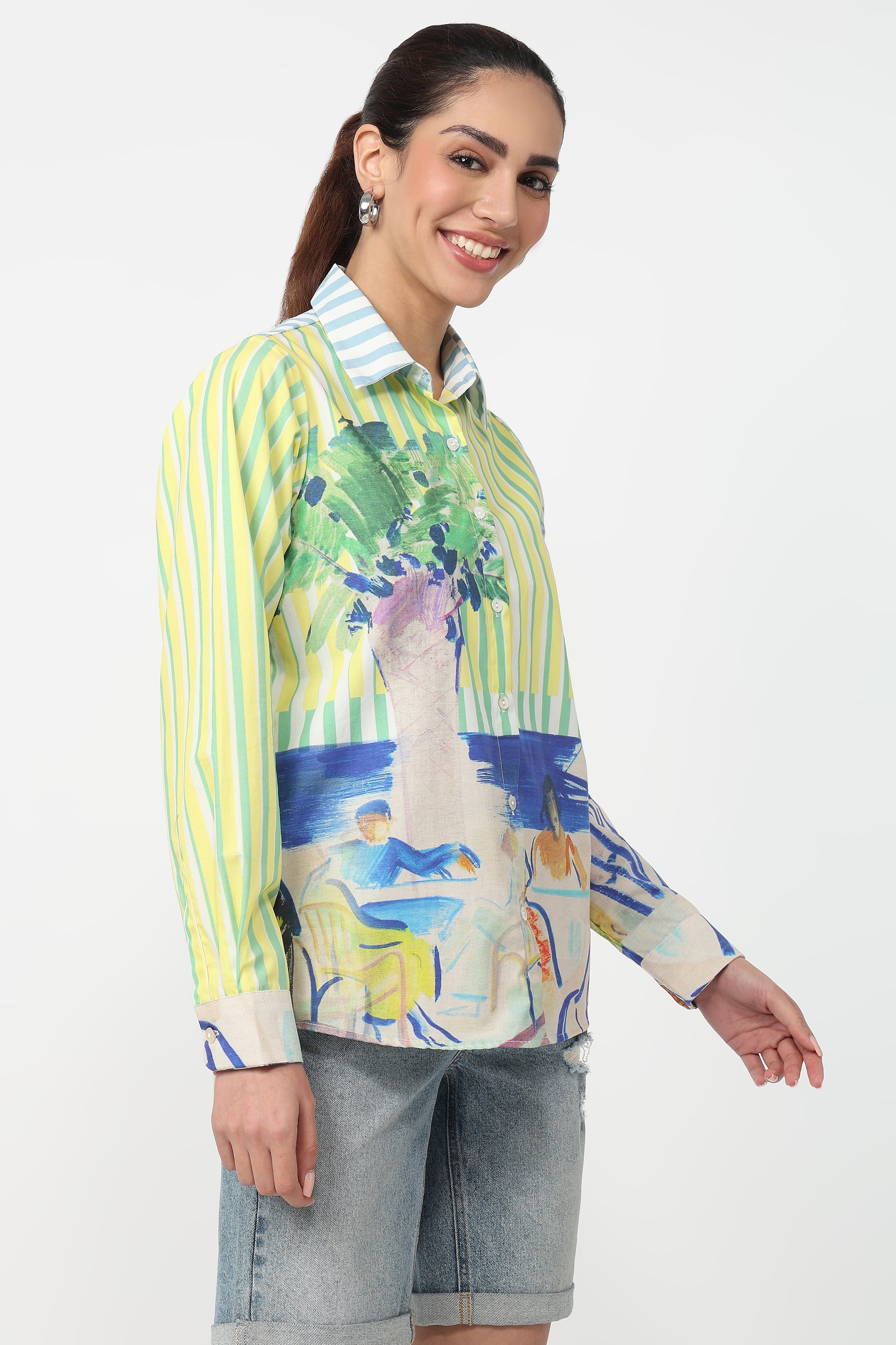 100% organic cotton summer soiree shirt featuring regular collar  regular sleeves and back button placket for a timeless appeal.